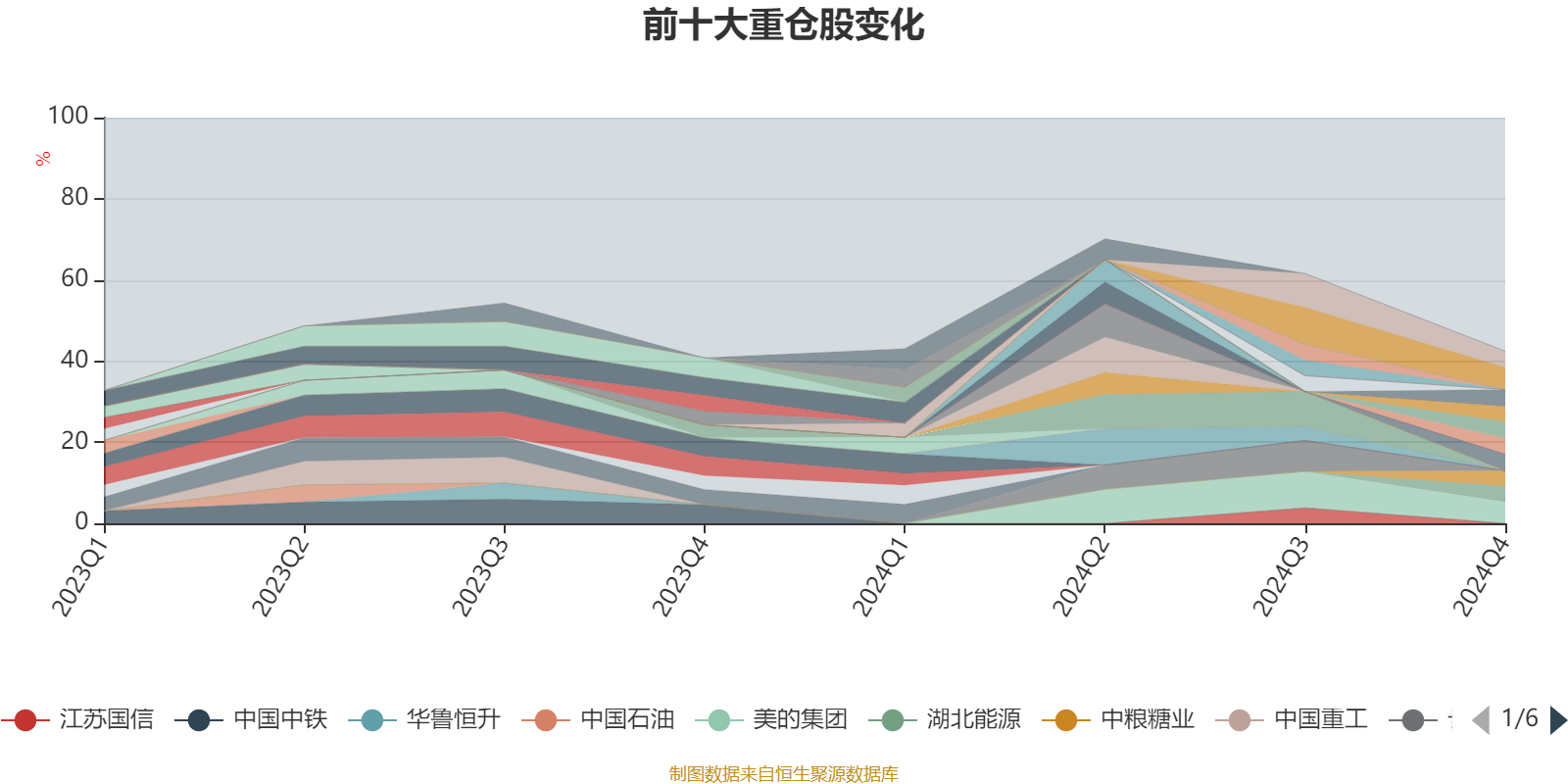 截至2024年四季度末,基金十大重仓股分别是福耀玻璃、美的集团、北大荒、国投电力、国电南瑞、常熟银行、陕西煤业、湖北能源、新华保险、中粮糖业。