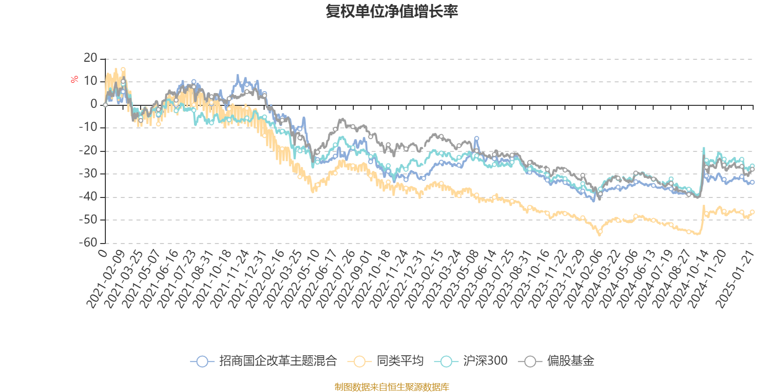 截至1月21日,招商国企改革主题混合近三个月复权单位净值增长率为-2.00%,位于同类可比基金436/646;近半年复权单位净值增长率为4.56%,位于同类可比基金478/645;近一年复权单位净值增长率为12.78%,位于同类可比基金331/633;近三年复权单位净值增长率为-28.96%,位于同类可比基金278/447。